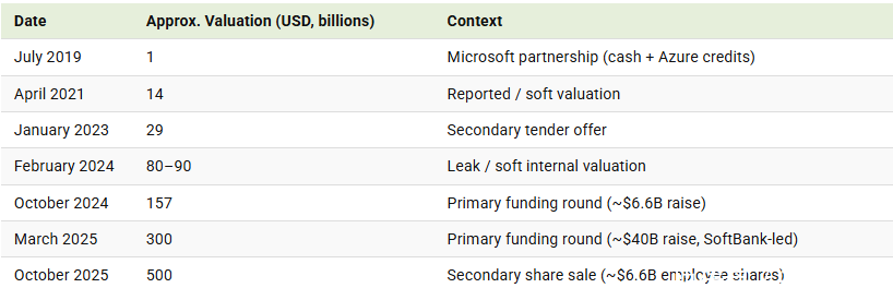 AI产业的资本狂热,不断将头部企业乃至初创企业的估值推向新高度。英伟达成为全球首家市值突破5万亿美元的公司,Open AI的估值从2024年10月的1570亿美元,一路暴涨至2025年10月的5000亿美元——相当于每月增长290亿美元,每天新增近10亿美元。Anthropic、Mercor等参与者同样增长迅猛,前者半年内估值从615亿美元翻升至1830亿美元,后者在8个月内从20亿美元攀升至100亿美元。