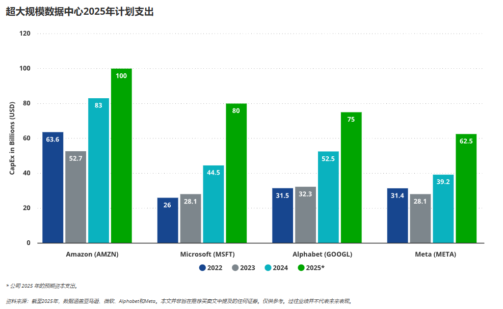 这种“投入-回报”的严重失衡,已蔓延至整个AI产业。亚马逊2025年约1000亿美元资本支出中,大部分流向云计算与AI;微软计划投入800亿美元,Alphabet提升至850亿美元,Meta锁定在660亿到720亿美元区间。瑞银进一步预测,2026年全球AI相关支出将达5000亿美元。