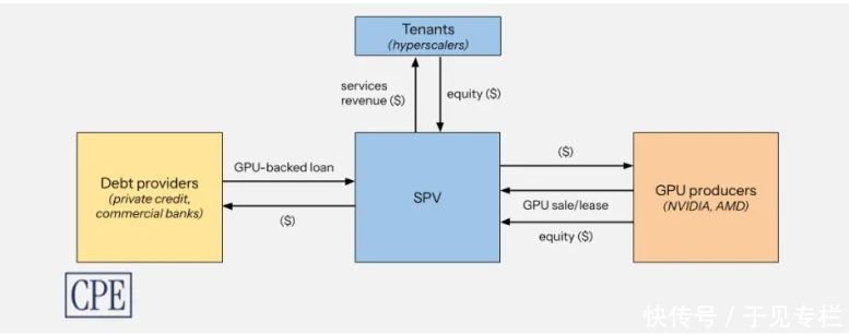 私募信贷、银行等金融机构通过“GPU抵押贷”(以未来采购的GPU为抵押物放贷——尽管GPU面临技术迭代快、贬值风险高的问题)或直接股权投资为SPV“输血”,而Meta等大型科技公司会小额入股(例如持股20%左右),刻意给金融机构制造“风险兜底”的错觉。